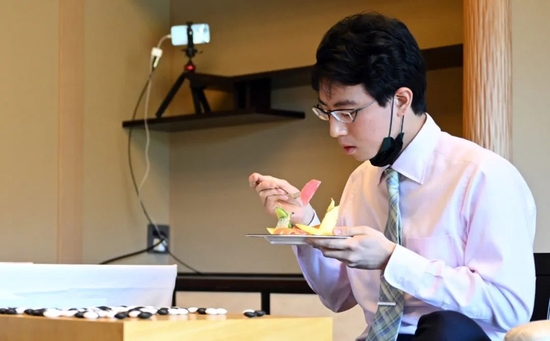 第三局第一天上午,芝野单独要了一份红芋馅的栗子羊羹。