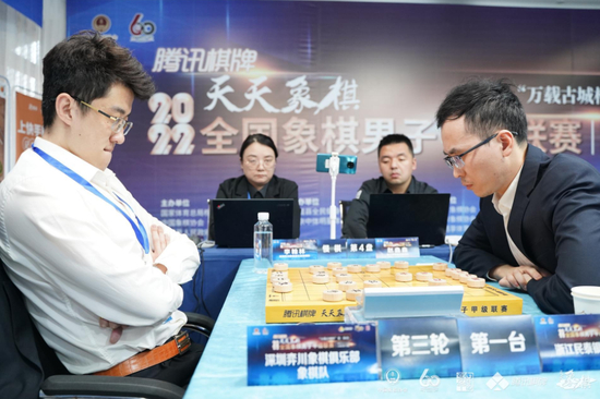 第二盘,浙江队虎贲大将黄竹风纵马闯阵,深圳李少庚挺身而出。双方慢棋战成平手,换先加赛快棋,黄竹风伏下妙计,强行擒获一炮,精彩动人。黄竹风在联赛后半段和季后赛为浙江队冲锋陷阵所向披靡,堪称中流砥柱。第三盘深圳曹岩磊状态回勇,乱战之中生擒义乌少帅孙昕昊,干净利落,深圳队已经立于不败之地。危急关头,浙江赵鑫鑫挽狂澜于既倒,扶大厦之将倾,紧握小先手步步紧逼,将深圳队常规赛第一得分手李翰林斩于马下,比赛拖入超快棋的比拼。