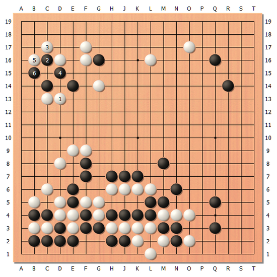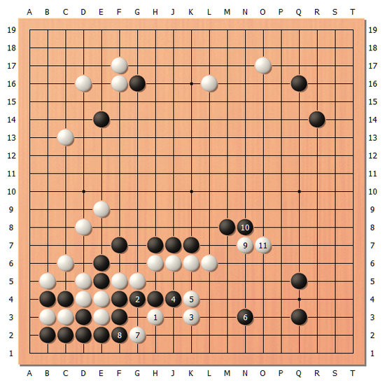 第一天午休结束后,下方的战斗最终白棋活出下方,黑棋吃掉白棋7子之后告一段落。