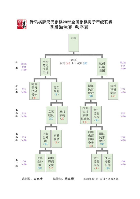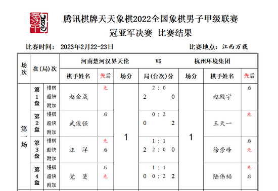 2023年2月22日,“腾讯棋牌 天天象棋”2022全国象棋男子甲级联赛总决赛在江西宜春万载县山水迎宾馆打响。