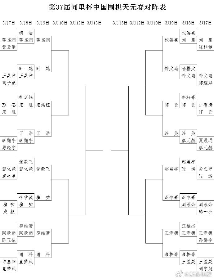 3月9日,第三十七届同里杯中国围棋天元赛16强战在北京中国棋院继续进行,比赛于12:30开赛,新浪正进行部分对局的棋谱直播,欢迎各位棋友进入下列棋谱直播间观战~