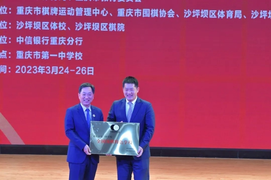活动当天,围棋世界冠军、中国围棋协会副主席常昊向重庆一中授牌,授予重庆一中“全国围棋特色学校”,重庆一中也是重庆市首批被授予的学校。