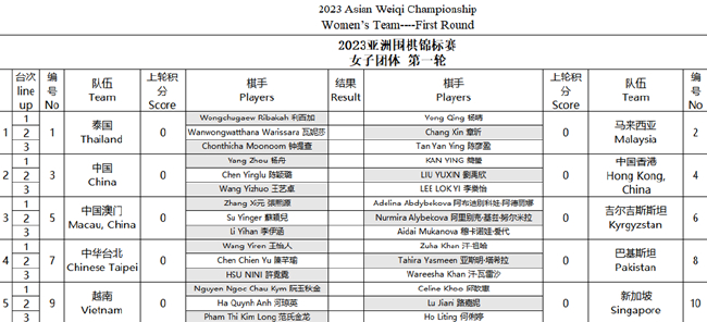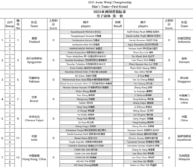 据统计,共有14支队伍合计80人报名参加男子团体赛,女子团体赛为10支队伍合计39人。其中,新加坡、马来西亚、泰国、印度尼西亚等国家(地区)参赛队伍,均由亚运会参赛棋手组成。中国方面,考虑到亚洲多数国家(地区)无职业棋手,为平衡各参赛队伍水平,保证练兵效果,本次比赛中国队成员主要从2022年全国围棋定段赛青少年男子组21-26名,青少年女子组11-14名中选出。