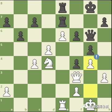 28。 。。。 g5 是必要的。29。 g4 ! Nd6 ( 29。 。。。 Nd4 ? 30。 Rxd4 ! cxd4 31 Nb3 是一个更好的对局)( 29。 。。。 Nh4 ? 30 。 Qd3 马被放错了地方) 30 。 R4e2 白方有足够的补偿少兵,这要归功于他在e6的强大的兵。但我真的不知道在这个局面下有什么计划来尝试取胜。