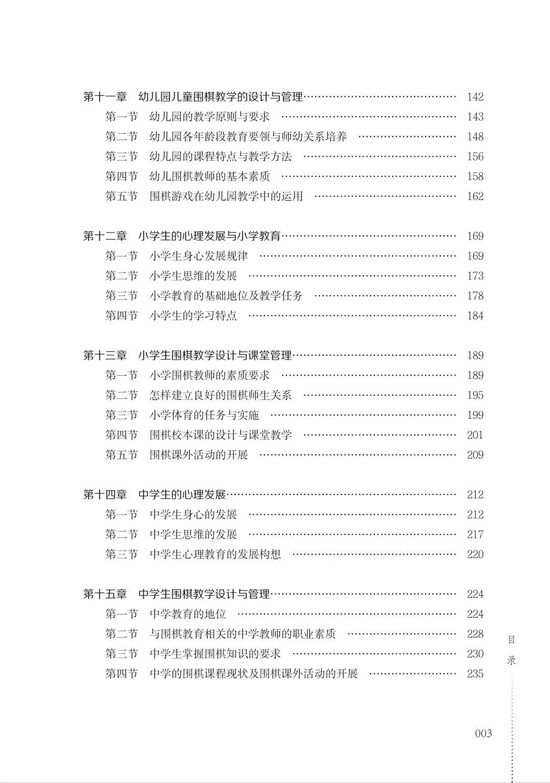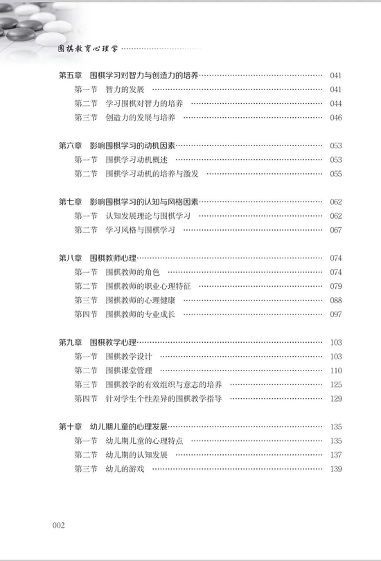 一是对围棋教师心理建设的探索与总结。书中认为,围棋教师不该仅是单纯围棋技艺的传授者,而应该是学生心灵的培育者,围棋教师应发展多种业余爱好,储备更多知识,当好学生的“领路人”。