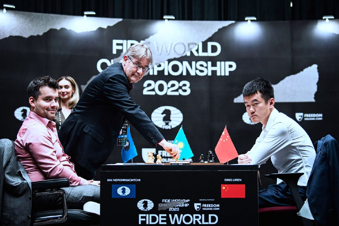 4月20日,2023国际象棋世界冠军赛第8局开赛,中国丁立人先手VS俄罗斯涅波姆尼亚奇先手,前7局丁立人3比4落后,2022年世界团体赛冠军成员白金石和女子国际特级大师谷笑冰搭档讲解本局比赛,本局双方错进错出最终和棋收兵,欢迎网友们点击下面直播间回看直播。