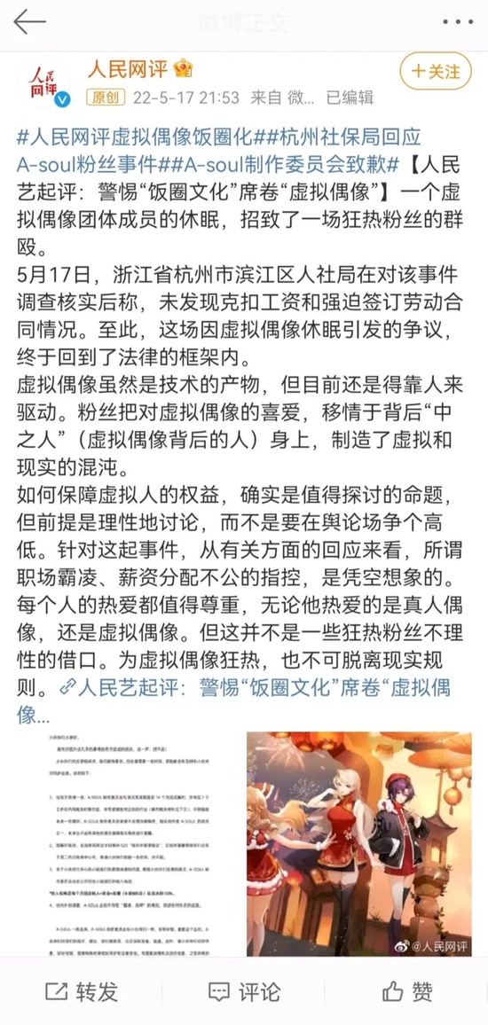 而大厂标榜的“永不塌房”,似乎也并不真实。虚拟偶像女团“A-soul”的珈乐闹出的劳资纠纷、前SNH-48团体成员疑似“七海-7Nanami”皮下的合约纠纷等……V主播同样会陷入千奇百怪的现实事件。而“中之人”传统的来源比如网红、艺人,在这方面确实也混乱了一点。