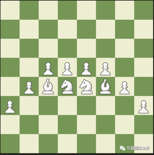除了这些,我还喜欢设置一些理想的局面。因此,举例来说,我尽可能多地从,比方说从白方下棋。而基本上我是在设置a3、b4、c5、d5、e5、f5、g4、h3。你知道,象c4、f4、马d4、马e4。