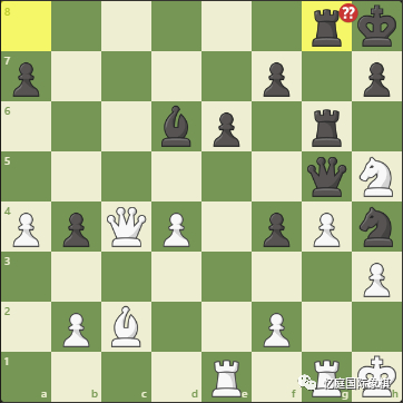 另一步强有力棋,黑方的计划是让皇后走到g5,车走到g8和h6,然后用粉碎性的攻击顶住f5。