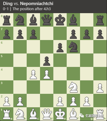 “你甚至可以冒险。。。。。。当丁立人在后翼弃兵中执白方下4.h3时,他在说:‘好吧,我想下一个完全未知的局面,绝对不是对我更好;这也不是一个安全的局面,只是一个复杂的局面,我希望会比对手更了解。这样的偏离有点早。而且那场比赛进行得非常、非常糟糕,但像这样的事情你在我的比赛中还没有见过。“