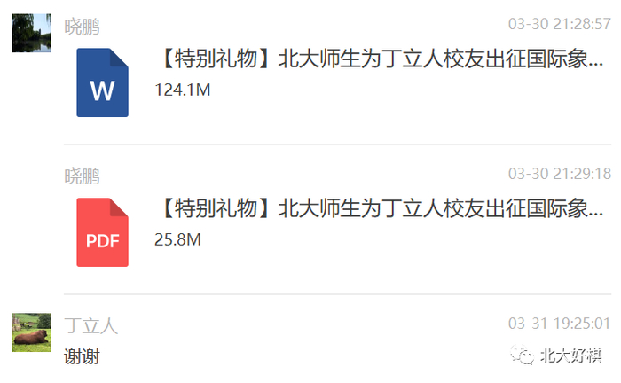 据了解,北大校友李逸飞、博士生师明赫、校友狄则徐、本科生朱嘉木等运用最新国际象棋引擎分析手段,通过远程方式,为丁立人校友近年来准备重大比赛提供了一些力所能及的有益支持。