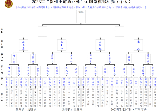 2023年5月5日,“贵州王道酒业杯”全国象棋锦标赛(个人)在广州市南沙区凯里亚德酒店继续酣战。