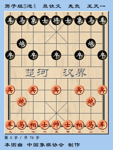45岁的老将聂铁文在八强中是唯一的一位“70后”,面对等级分第一人,采用了稳扎稳打的飞相局,王天一则以两头蛇应战。聂铁文布局阶段弃兵争取出子速度,构思新颖,令王天一也不得不几度沉吟。双方各自渡河一兵一卒,使得局势更为复杂,但黑卒对红马构成威胁,明显有利。正是由于这一枚小卒的不断骚扰,聂大师付出了一仕一相的高昂代价。王天一一面捞取实惠,一面简化局面,使得红棋攻守失据。战至残局,聂铁文见城池破损,难以抵挡黑方车马卒的联袂攻击,被迫签订城下之盟。王天一后手获胜,距离半决赛仅一步之遥。