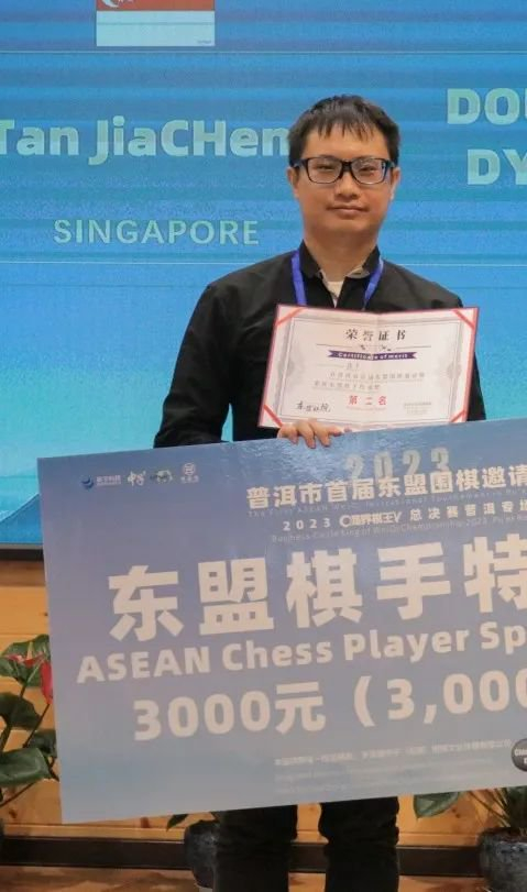Singaporean WeiQi player Tan Jiacheng won the second place in the ‘ASEAN WeiQi Players Special Award’。 After the award ceremony, I grabbed the opportunity to chat with him for a few words。