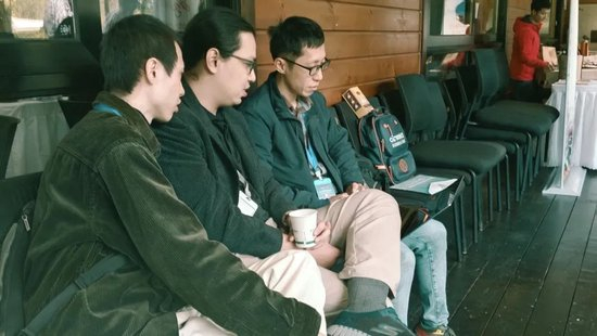 The Vietnamese WeiQi team catched the time to review the game on the computer during the break time between rounds