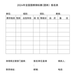 附:2024年全国围棋锦标赛(团体)参赛报名表