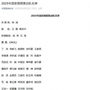 王星昊等入选新一届国家围棋集训队 柯洁未在其列