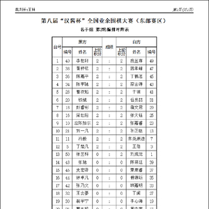 6月14日,第八届汉酱杯全国业余围棋大赛(东部赛区)在青岛海天金融中心酒店开战。以下为第2轮对阵: