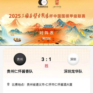 6月17日,2025三国赤壁古战场杯中国围棋甲级联赛第四轮在上海、河南郑州、江苏南京、浙江杭州、浙江嘉兴、福建福州、四川成都、贵州遵义仁怀八个主场城市结束。山东银丰队在郑州客场战胜河南丰博队,积6分位列榜首。