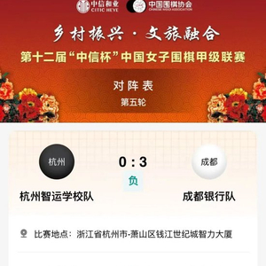 中信杯女子围甲联赛第五轮 杭州云林决破队领跑