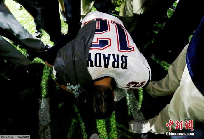 资料图:北京时间2017年2月6日,第51届NFL超级碗在休斯顿落幕,新英格兰爱国者队上演神奇逆转。在布雷迪的带领下,一度落后25分的爱国者队以34比28逆转战胜亚特兰大猎鹰队,第5次夺取超级碗冠军。