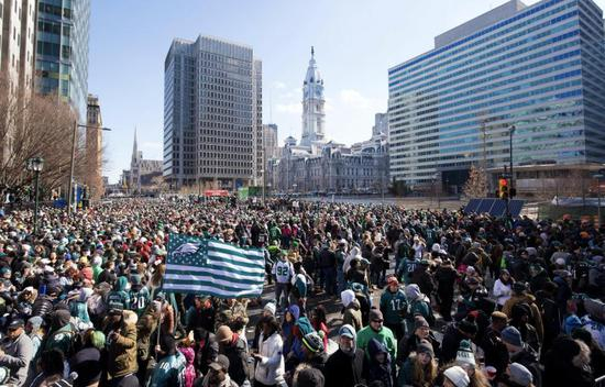 2018年2月9日,美国费城举行庆祝集会和游行,庆祝老鹰队夺得美国职业橄榄球大联盟(NFL)“超级碗”冠军。