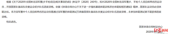 此外,射击协会还在9月18日再次发函补充说明:国家队运动员必须体能达标。本次冠军赛中个人项目前两名的运动员需通过冠军赛的体能测试方具备国家队备战东京奥运会初步队伍选拔资格,未参加体能测试者不能获得选拔资格。也就是说,如果不能通过体测,枪打得再准,还是没法获得奥运会选拔资格。记得2004年雅典奥运会,44岁的王义夫在10米气手枪比赛中夺得金牌。如果换到现在,44岁高龄且身体发胖的老将,显然是不可能获得奥运会资格的。