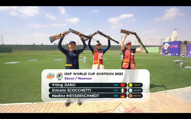 北京时间4月29日晚,2023年国际射联世界杯(飞碟)埃及开罗站决出了首枚金牌。在飞碟双向女子个人决赛中,中国小将江伊婷以35中摘得本次赛事首金,意大利选手西蒙娜-斯科切蒂(SCOCCHETTI Simona)和德国选手纳迪娜-梅舍施密特(MESSERSCHMIDT Nadine)分获银牌和铜牌。