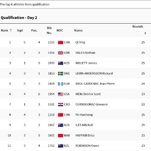 在1-4名的加赛中,中国选手齐迎以7中排名第一,世界纪录保持者、英国选手内森-黑尔斯(HALES Nathan)以6中排名第二,澳大利亚选手詹姆斯-威利特(WILLETT James)以1中排名第三,瑞典选手里卡德-莱文-安德森(LEVIN-ANDERSSON Rickard)以0中排名第四。这4人也全部晋级决赛。