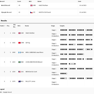 最后2轮10靶之后,世界纪录保持者、英国选手内森-黑尔斯(HALES Nathan)以48中获得金牌,同时打破了捷克选手大卫-科斯特莱茨基(KOSTELECKY David)在东京奥运会上创造的43中的奥运会纪录,中国选手齐迎以44中排名第二,获得银牌,他的成绩也超过了前奥运纪录。