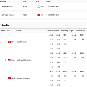 北京时间8月2日下午,2024巴黎奥运会射击项目决出了第10枚金牌。在女子步枪50m三姿决赛中,瑞士选手莱昂内以464.4环获得金牌,并打破了由她的同胞克里斯滕在东京奥运会上创造的463.9环的奥运会纪录,美国选手马达莱娜以463.0环获得银牌,中国选手张琼月加枪负于马达莱娜,获得铜牌。