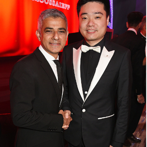 北京时间5月6日消息,中国斯诺克名将丁俊晖荣膺第七届亚洲奖杰出运动员奖。伦敦市长萨迪克-汗与丁俊晖合影亲密合影,秒变迷弟!