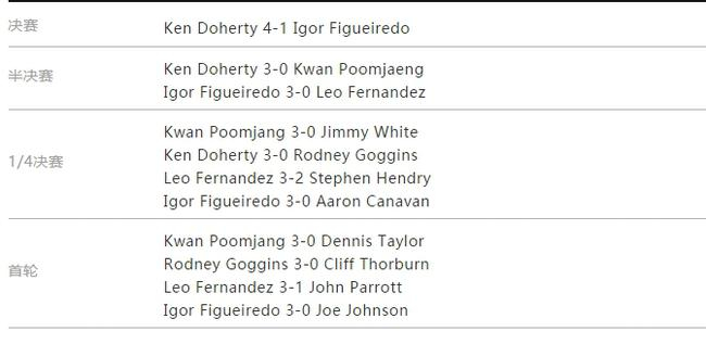 爱尔兰老将肯·达赫迪在英格兰胡尔城刚刚结束的元老巡回赛英锦赛决赛中,以4比1战胜巴西球员伊戈尔·菲格雷多,夺得冠军。该项赛事是2018/19赛季世界元老斯诺克巡回赛(WSST)的首项赛事,本赛季也是首次由世界职业台联(WPBSA)认证。