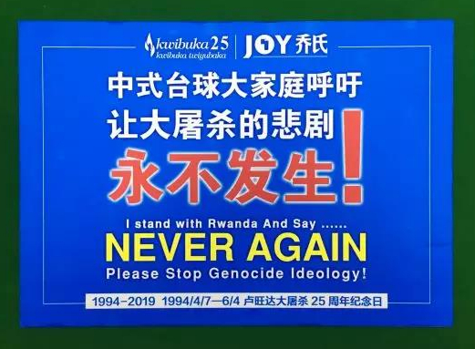 皮埃尔在卢旺达大屠杀中失去双亲,他在纪念日当天恳请大师赛临沂站通过赛事的国际影响力让更多人铭记这段历史,携手创造人类美好未来。大师赛组委会响应了这个提议,邀请各国运动员参加Never Again(灾难永不重来)的活动,一起表达对灾难的反思和对逝者的缅怀。中式八球国际联合会主席乔冰也在社交媒体上发表讲话,全文如下: