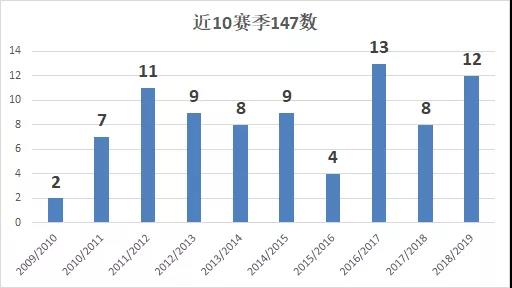 就在不久前,世界斯诺克发布了新赛季147的奖金制度,取消现有的147奖金(世锦赛可能单独设立),而增加一个20人次147出现后,所有人分享的100万英镑的奖金池。按照职业球员攻击力的发展趋势,20杆147的目标并非完全的镜中水月,但这项制度的合理性还是引发了很多讨论。
