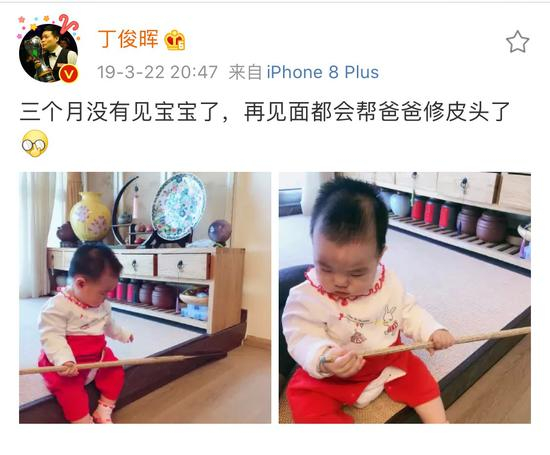 “三个月没有见宝宝了,再见面都会帮爸爸修皮头了。”