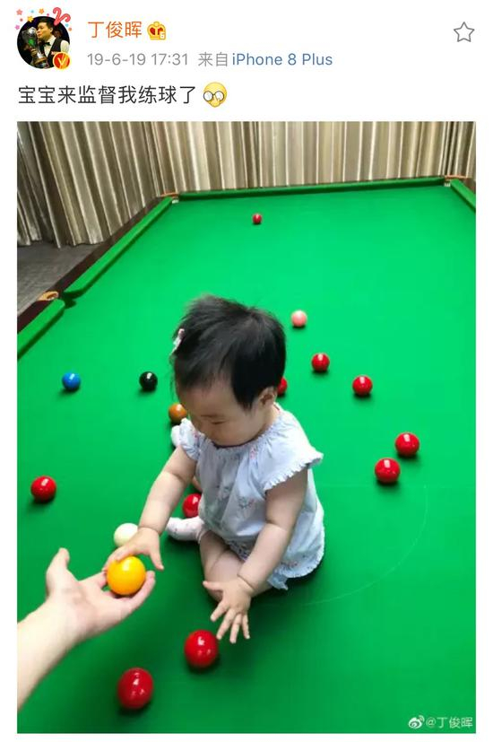 2018年8月8日,丁俊晖女儿平安降生。自此,丁俊晖的冷峻画风就变成了丝毫不输贝克汉姆的“宠女狂魔”。丁俊晖曾经斩钉截铁地回答媒体,“我还是比较在乎自己家庭的私人时间和私密度”,一度让媒体以为很难看到丁家千金的样子。没想到,奶爸忍不住地各种晒。