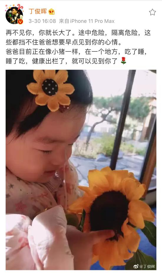 在沈阳的14天隔离观察期,丁俊晖还对女儿隔空诉衷肠,“再不见你,你就长大了。途中危险,隔离危险,这些都挡不住爸爸想要早点见到你的心情。爸爸目前正在像小猪一样,在一个地方,吃了睡,睡了吃,健康出栏了,就可以见到你了。”