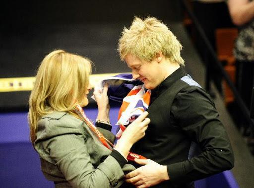 她落地时,儿子已经确保了决赛一席,最终罗伯逊击败格雷姆·多特夺冠,她在克鲁斯堡挥起澳大利亚国旗。