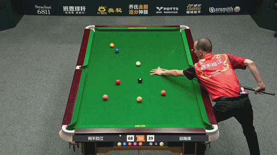 或许,这就能解释为什么抓住机会后邱炮谋没有选择继续猛攻,而是选择最保守的打法。第11局,邱炮谋跳进黑八强势拿下此局,扼制住了阿不拉江的连胜步伐,但随后的第12局,邱炮谋开球未进,阿不拉江准进1号球后一杆清台,比分38:5。