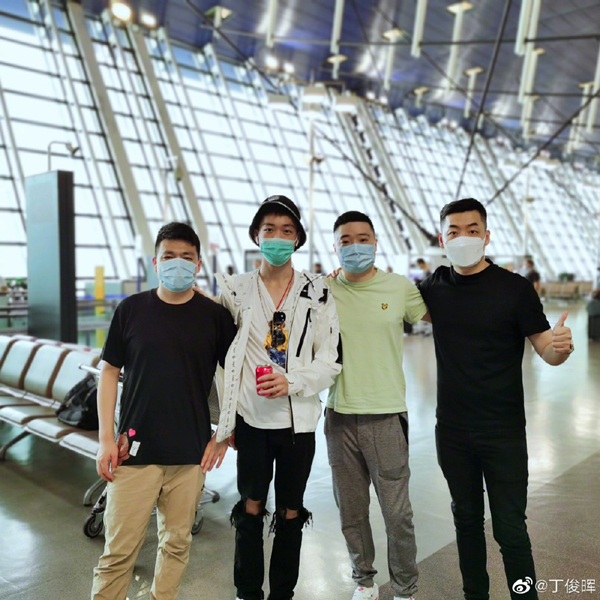 图说:丁俊晖与田鹏飞、罗弘昊和鲁宁一同出发前往英国 网络图