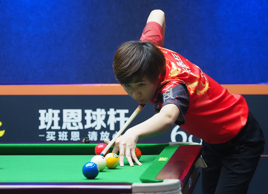 比赛伊始,杨帆以一记漂亮的4传9拿下普胜开局,随后张晓彤打出一记小金反击,比分4:2。第6局,杨帆打出首杆大金,以14:5的比分开启了领先优势。