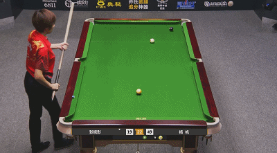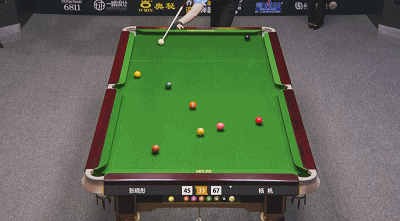 中场休息归来后,张晓彤率先开启了自己的“摸金”模式,第22局一杆大金后,又打出1小金2大金,追赶比分来到41:49。面对张晓彤的攻势,杨帆以5连胜反击,随后在第31局又一杆大金,让比分来到67:41。
