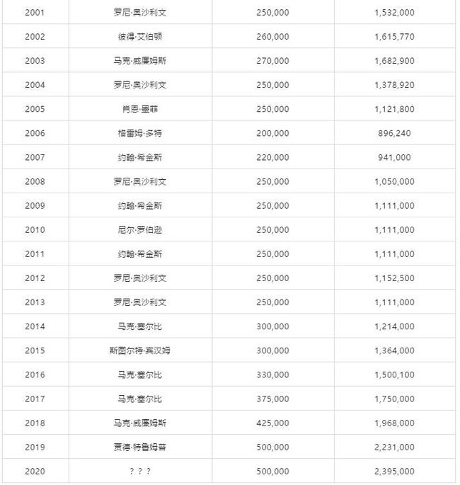 世锦赛历届奖金:是金钱的魅力 也是兴衰的见证