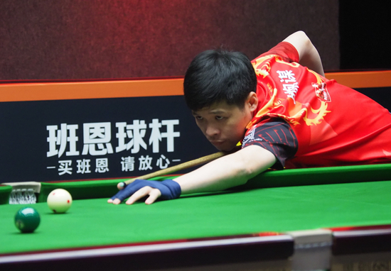 第10局,邱炮谋长台勾进3号球,完成高难度大金,比分10:36