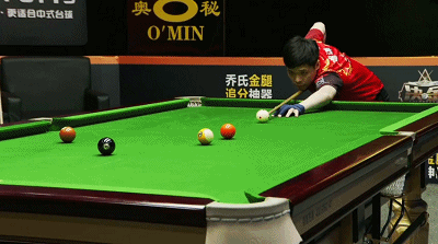 第12局,邱炮谋强烈杆法打8精准走位9号球