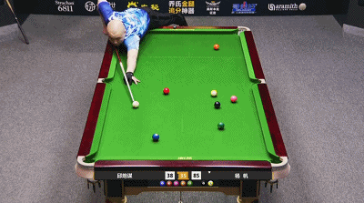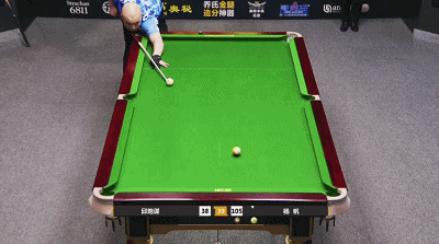 第33局,邱炮谋打8走9,完成一杆漂亮大金,比分38:83