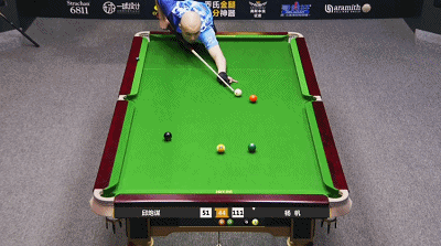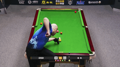 第39局,杨帆打进9号球,完成四连大金,比分111:38,完成超分