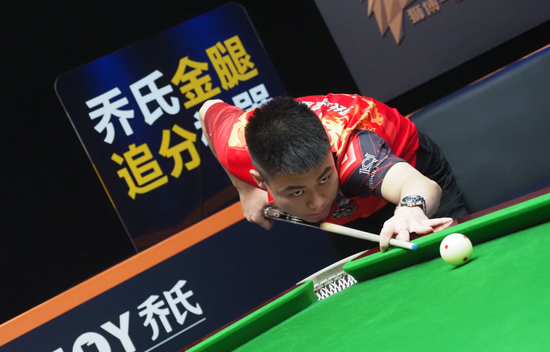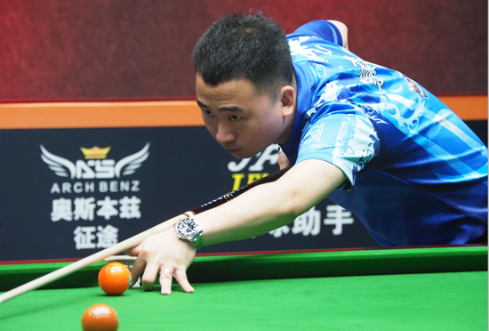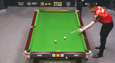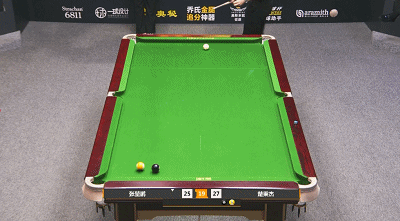 第13局,张堃鹏打出一杆小金反击,随后几轮连胜让比分步步紧逼。第17局,张堃鹏又一杆小金,追平比分,25:25。第20局,张堃鹏轰出大金,33:27。