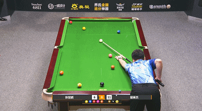 第10局,张堃鹏母球贴库无碍百步穿杨